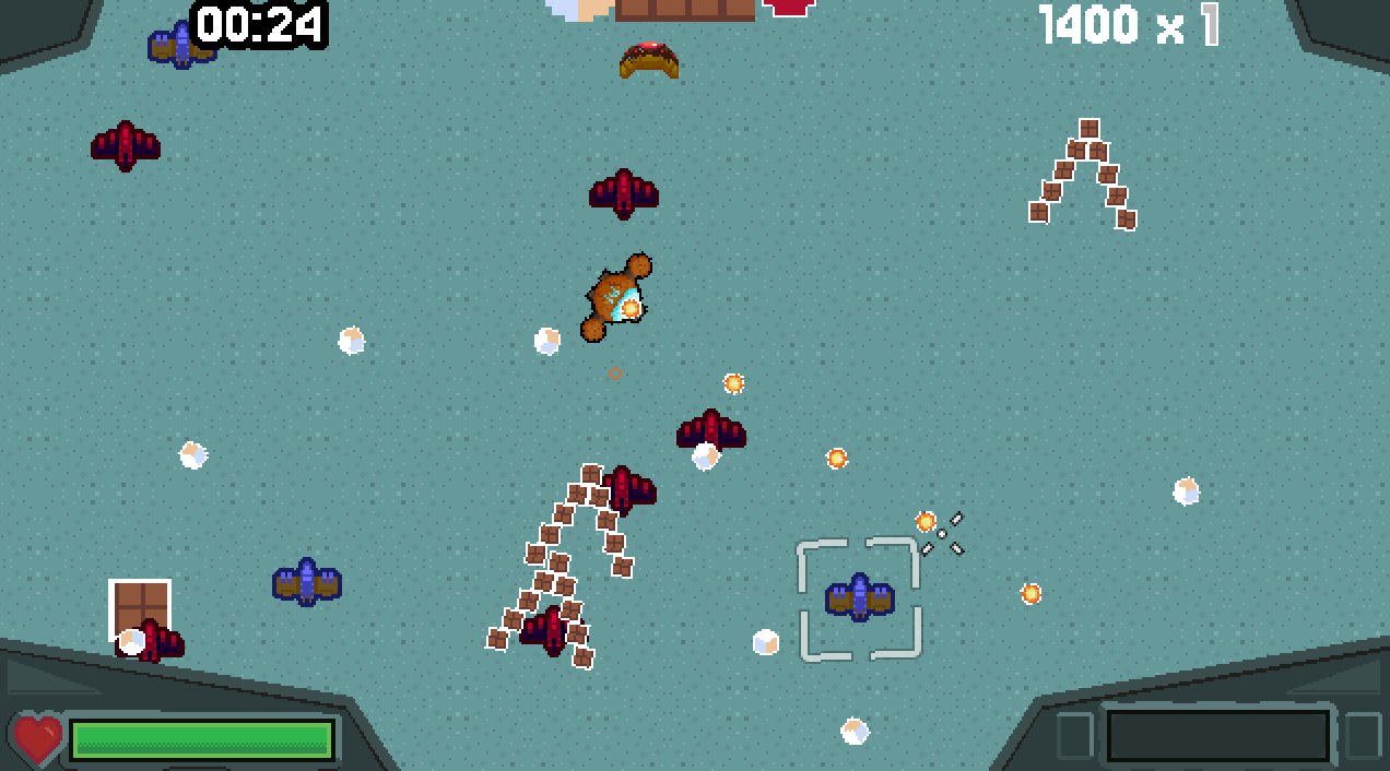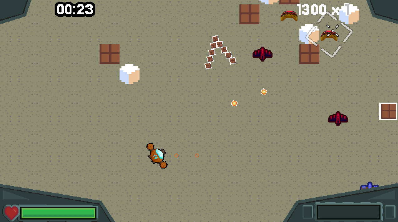 You play as Commander Biscuit. Your goal is to slay the evil intergalactic food monsters that threaten the Biscuit Kingdom's existence!