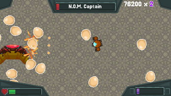 Take control of your ship and fight your way through three GIANT bosses to fight back the invaders! Use the N.O.M Dash to eat through tons of bullets and upgrade your ship, but watch out: as you level up, you also become larger and easier to hit!